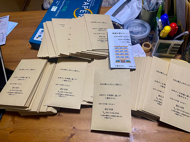 このところ仕事がなくて専ら私事で同級会の会報作りなどで実益の無いパソコン操作でナマケ?呆けていますが今年になってから自分より高齢な塗装屋さん←光が丘の都営AP団地にお住い)から内装工事のお客さんを紹介されて現在もその紹介仕事が継続的に入って来ていますが今回もまた連絡があり同じ団地内で15日に下見と状況によっては即作業ができるかもしれません)仕事が決まりましたがその際にこの塗装屋さんが『所帯数が千以上もアルので自分で手配りするから内装のチラシを持って来て欲しい!』とのアリガタイ依頼を受けてまだ渡すまで時間はあったのに▷思い立ったが吉日▷今日できる事は明日に延ばすな!精神を発揮して既にユウゲの呑みも済んで寝る時間が迫っていたのに急きょ彼に渡すチラシをプリントして封筒に入れる作業を開始!出来上がってみるとモウ時間は子供が寝る時間をwトウに過ぎて23時半!106部が完成しましたが歳を取ると▶︎自分の場合は若い頃から続く物事を先に延ばす性分が多々あって(モット早くから対応しとけば良かった!)思う事は特に仕事上では頻シキりにあったので効率が悪くなってましたが▷ここに来て体調が良くなり伴う頭の回転も?行き当たりばったりの泥縄的な行動から脱却した感あり!←気のセイかもw)人は高齢者は活きる明確な目標 目的がアルと活気付くのですがそれは運気が高まった証拠⁈この相乗効果を上手く活かして仕事と私事でも焦る事なく今日ヤル⇔出来る事をしっかり済ませて▷明日に向かって歩むのです!←キマリました!w